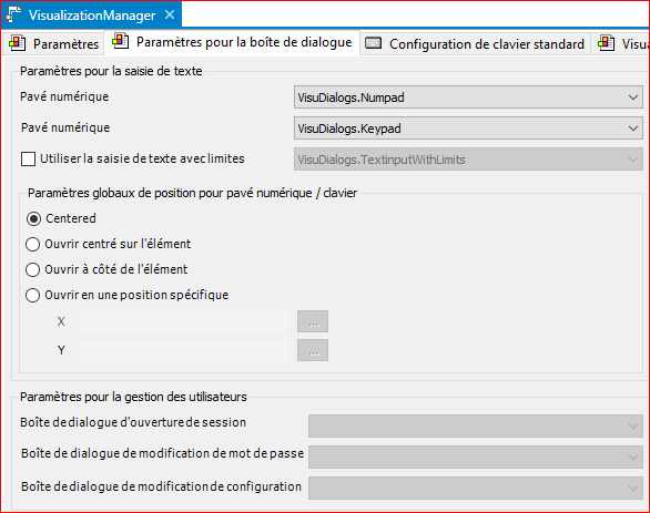 - De paramétrer les boites de dialogues qui seront utilisée pour les pavé numériques et alpha-numériques ainsi que leurs positionnement