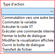 Les actions suivantes peuvent être utilisées et les actions à effectuer doivent être paramétrées.